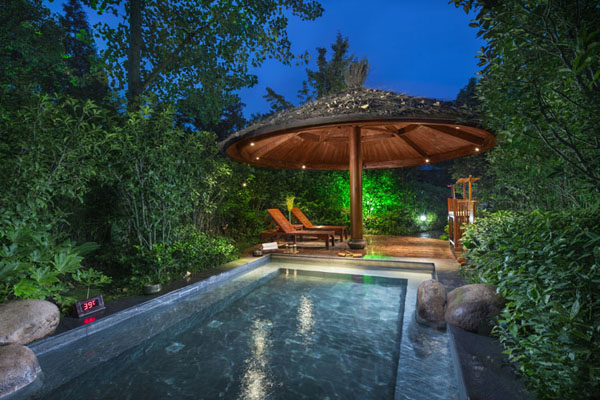 温泉是大自然最古老的赐予,从单纯的石间涌出一股热流,慢慢融入自然,而泡温泉则是一种享受,能享受身心愉悦的舒适之感。御水温泉毗邻万亩竹海,坐享天然氧吧。露天泡池依山傍水,或隐于巧木古树之下,享自然温泉滋润,又有醉心美景相伴,是慢享假期的世外桃源。
