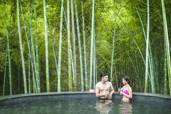 冬季是养生的好季节,而竹海森林中泡汤,更是绝妙的体验。御水温泉拥有57处户外露天泡池,6大泡池区,让您在秀美竹林间畅享与泉水亲密互动。御水温泉中新增的竹尖温泉,是国内唯一的竹尖温泉。与其他温泉不同之处在于竹尖温泉的泡池立于竹梢,整个竹尖温泉被竹海山林秀美景色所环抱,是景区内远眺竹海美景的最佳观赏处。泡竹尖温泉,山间的云雾缭绕好像与温泉升腾的雾气相融合,有种如沐云端、似仙似梦的感觉,也能得到 “高处亦可暖,一览众山小”的独特体验。身在竹尖温泉,心在云海畅游,超脱世外,体会自然养生的新感觉。