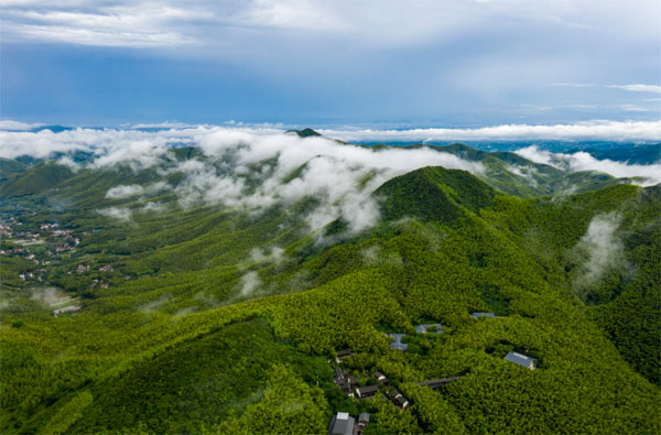 登顶吴越,置身其中,以峰为体,以云为衣,柔韧在指尖滑过,竹香在鼻尖轻点,近观风竹共舞,远瞰云涌水动,才念“从今有雨君须记,来听萧萧打叶声”的情趣。