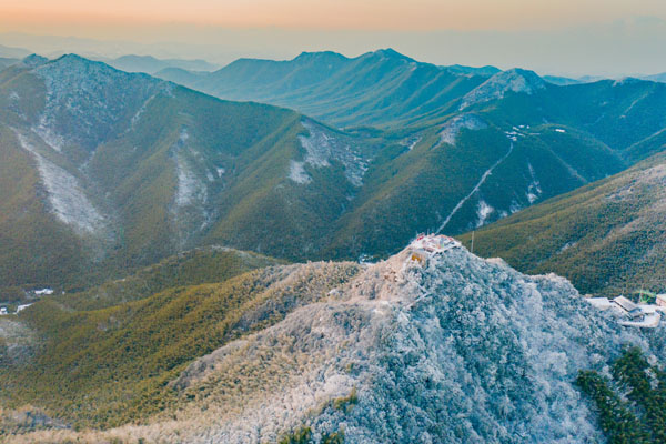南山竹海万千飞雪宛如穿庭飞花,为竹海增添了一抹耀眼的白。雪竹风松醉格高,雪中翠竹,气韵更佳,亭亭玉立不折腰,凛然傲气上云霄。在云开日出,晨光熹微之时,只见这橙的、绿的、白的相互交织,浑然构成一幅油画中的瑰丽仙境。