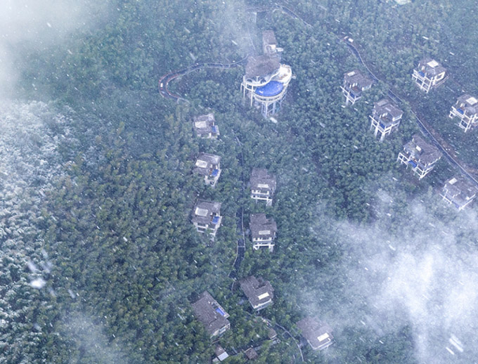 2023年12月16日凌晨,寒流为天目湖南山竹海景区带来了今冬第一场雪,银妆新砌,盛景初上。